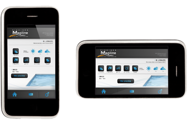 The only swimming pool system with a remote control unit as standard, to give you control over your comfort, your safety, and your energy consumption. iMAGI is a comprehensive swimming pool system that combines control software, a touch-screen interface connected to the pool, and an application. The iMAGI app, compatible with all Smartphones and tablets on the market*, lets you interact with your swimming pool via its interface: